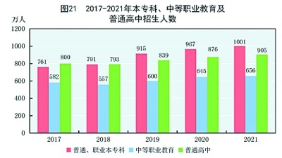 [65]普通、職業(yè)本專科包括普通本科、職業(yè)本科、高職(??疲?。2021年高職(專科)招生人數(shù)統(tǒng)計口徑發(fā)生變化,包含五年制高職轉(zhuǎn)入??普猩藬?shù)。