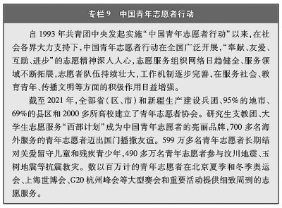 無論在城鎮(zhèn)還是鄉(xiāng)村、企業(yè)還是學(xué)校,青年都自覺把正確的道德認(rèn)知、自覺的道德養(yǎng)成、積極的道德實(shí)踐緊密結(jié)合起來,帶頭倡導(dǎo)向上向善社會(huì)風(fēng)氣、塑造社會(huì)文明新風(fēng)尚。在城鄉(xiāng)社區(qū)建設(shè)中,越來越多的青年投身社區(qū)治理和服務(wù)體系建設(shè),主動(dòng)參加“社區(qū)青春行動(dòng)”,加強(qiáng)實(shí)踐鍛煉、提升服務(wù)貢獻(xiàn)。在各行各業(yè),青年秉承“敬業(yè)、協(xié)作、創(chuàng)優(yōu)、奉獻(xiàn)”的理念,踴躍創(chuàng)建“青年文明號(hào)”,大力弘揚(yáng)新時(shí)代職業(yè)文明,展現(xiàn)新時(shí)代職業(yè)形象。廣大青年運(yùn)動(dòng)員弘揚(yáng)體育道德風(fēng)尚,以良好的賽風(fēng)賽紀(jì)和文明禮儀,獲得競(jìng)技成績(jī)和精神文明雙豐收。1993年“中國(guó)青年志愿者行動(dòng)”啟動(dòng)以來,志愿服務(wù)成為青年參與社會(huì)治理、履行社會(huì)責(zé)任的一面旗幟,成為青年在奉獻(xiàn)人民、服務(wù)社會(huì)中鍛煉成長(zhǎng)的重要途徑。截至2021年底,全國(guó)志愿服務(wù)信息系統(tǒng)中14歲至35歲的注冊(cè)志愿者已超過9000萬(wàn)人,他們活躍在社區(qū)建設(shè)、大型賽事、環(huán)境保護(hù)、扶貧開發(fā)、衛(wèi)生健康、應(yīng)急救援、文化傳承等各個(gè)領(lǐng)域,弘揚(yáng)“奉獻(xiàn)、友愛、互助、進(jìn)步”的志愿精神,在全社會(huì)形成團(tuán)結(jié)互助、平等友愛、共同前進(jìn)的新風(fēng)尚。中國(guó)青年志愿者扶貧接力計(jì)劃研究生支教團(tuán)、大學(xué)生志愿服務(wù)“西部計(jì)劃”連續(xù)18年派遣41萬(wàn)余名研究生、大學(xué)畢業(yè)生,到中西部2100多個(gè)縣(市區(qū)旗)開展扶貧支教、衛(wèi)生醫(yī)療等志愿服務(wù)。青年始終是大型賽會(huì)志愿服務(wù)的主體力量,給千家萬(wàn)戶乃至全世界留下深刻印象。