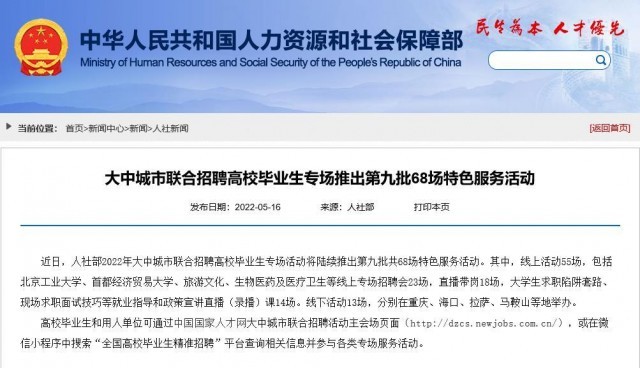 高校迎來畢業(yè)季。教育部從5月開始到8月中旬,開展高校畢業(yè)生就業(yè)“百日沖刺”系列活動,多措并舉促進2022屆高校畢業(yè)生更加充分更高質(zhì)量就業(yè)。此外,人力資源和社會保障部、教育部等部門聯(lián)合各大網(wǎng)絡(luò)平臺組織了一系列招聘活動↓↓