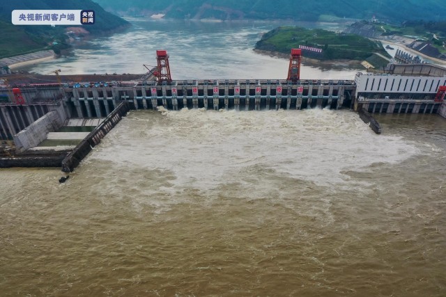 在大藤峽水利樞紐工程現(xiàn)場(chǎng),21個(gè)泄水閘門中已抬起敞開(kāi)泄洪,出庫(kù)流量由9000立方米/秒加大至17000立方米/秒,降低壩面水位至汛限水位47.6米以下,保證工程防汛安全。