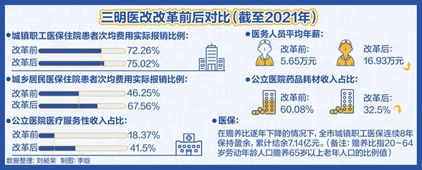 此外,通過實行醫(yī)??傤~付費、結(jié)余留用激勵機制,緊密型縣域醫(yī)共體將更多工作轉(zhuǎn)向健康管理,試點地區(qū)參保居民住院率從2019年的24%下降至2020年的15%,醫(yī)保實際報銷比提高到61.2%,好于全國平均水平,群眾醫(yī)療費用負擔(dān)減輕。