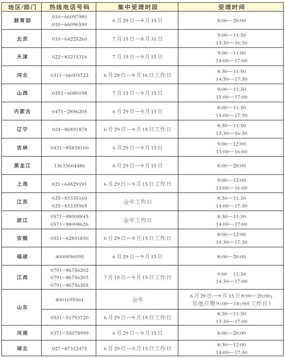 教育部要求各省區(qū)市及所屬高校、中央高校學(xué)生資助管理部門均開通熱線電話,并結(jié)合實(shí)際情況自行確定集中受理時段和具體受理時間。