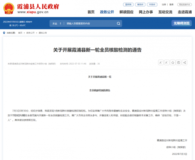 央視網(wǎng)消息:據(jù)霞浦縣人民政府網(wǎng)站消息,福建省寧德市霞浦縣應(yīng)對新冠肺炎疫情工作領(lǐng)導(dǎo)小組(指揮部)7月3日發(fā)布通報, 7月3日5時30分,經(jīng)初步篩查,霞浦縣發(fā)現(xiàn)1例新冠肺炎核酸檢測初篩陽性。為切實保障廣大市民身體健康和生命安全,霞浦縣應(yīng)對新冠肺炎疫情工作領(lǐng)導(dǎo)小組(指揮部)決定于7月3日12時在全縣范圍內(nèi)開展新一輪全員核酸檢測工作。