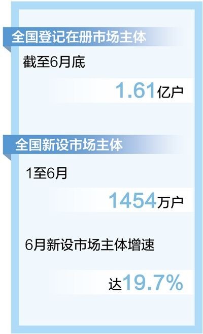 截至6月底市場主體達(dá)1.61億戶 “四新經(jīng)濟(jì)”企業(yè)占企業(yè)總量比例達(dá)46.4%