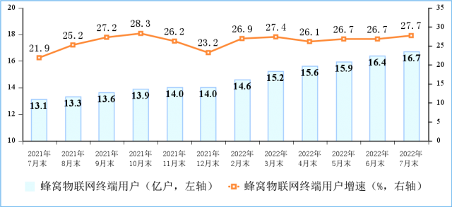 移動(dòng)網(wǎng)絡(luò)連接終端中物聯(lián)網(wǎng)用戶(hù)占比近半,IPTV用戶(hù)數(shù)穩(wěn)步增加。截至7月末,三家基礎(chǔ)電信企業(yè)發(fā)展蜂窩物聯(lián)網(wǎng)終端用戶(hù)16.67億戶(hù),比上年末凈增2.7億戶(hù),占移動(dòng)網(wǎng)終端連接數(shù)(包括移動(dòng)電話用戶(hù)和蜂窩物聯(lián)網(wǎng)終端用戶(hù))的比重已達(dá)49.9%。IPTV(網(wǎng)絡(luò)電視)總用戶(hù)數(shù)達(dá)3.68億戶(hù),比上年末凈增1979萬(wàn)戶(hù)。