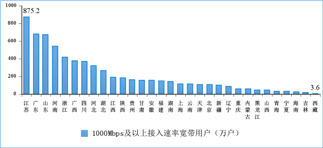 圖9 2022年7月份1000Mbps及以上接入速率的寬帶接入用戶(hù)各省情況