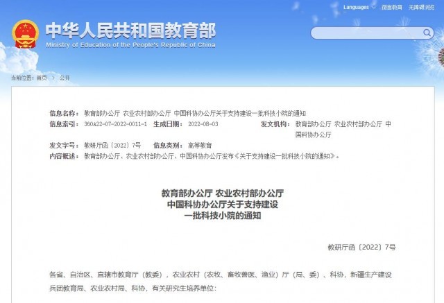 央視網(wǎng)消息:8月23日,教育部辦公廳、農(nóng)業(yè)農(nóng)村部辦公廳、中國(guó)科協(xié)辦公廳發(fā)布《關(guān)于支持建設(shè)一批科技小院的通知》。