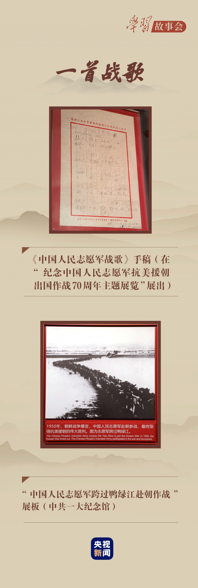 著名音樂家周巍峙在《人民日報》上看到這首詩歌后,僅用半個小時就譜出了曲子。猶如火把照亮前方的路,《中國人民志愿軍戰(zhàn)歌》自此響徹朝鮮戰(zhàn)場。