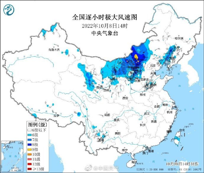 今天(10月8日)14時左右,內(nèi)蒙古中西部、寧夏等地已出現(xiàn)9級以上烈風。隨著冷空氣繼續(xù)推進,9日至10日,華北、東北地區(qū)及黃淮、江淮等地也將先后出現(xiàn)5~6級偏北風,部分地區(qū)陣風7~9級,內(nèi)蒙古中部、華北北部局地可達10級,尤其京津冀及河南、山東等局地大風有一定極端性。