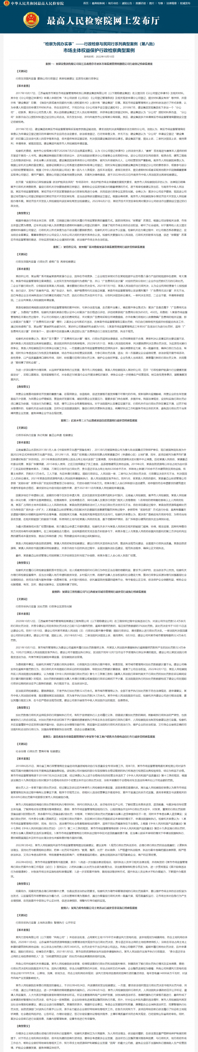 央視網(wǎng)消息:據(jù)中華人民共和國最高人民檢察院網(wǎng)站消息,10月10日,最高人民檢察院以“市場主體權益保護”為主題發(fā)布第八批“檢察為民辦實事”——行政檢察與民同行系列典型案例。