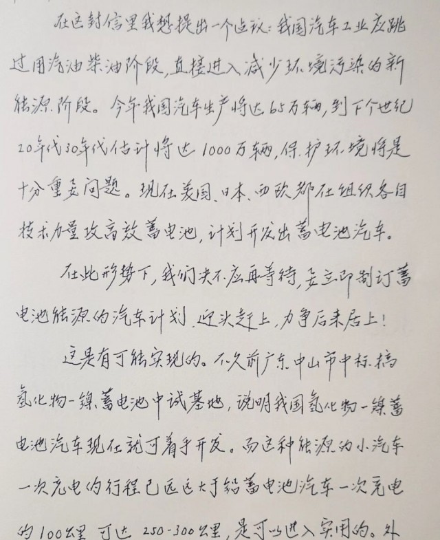 信中說,“在此形勢下,我們絕不應(yīng)再等待,要立即制訂蓄電池能源的汽車計劃,迎頭趕上,力爭后來居上。”