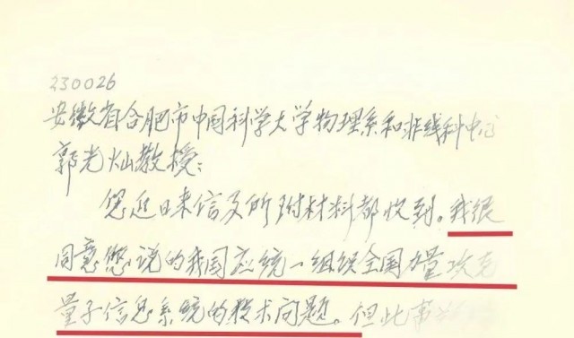 信中寫道:“我很同意您說的我國應(yīng)統(tǒng)一組織全國力量攻克量子信息系統(tǒng)的技術(shù)問題?!薄按耸玛P(guān)系到國家大事”,還就如何“組織全國力量”表達了看法。