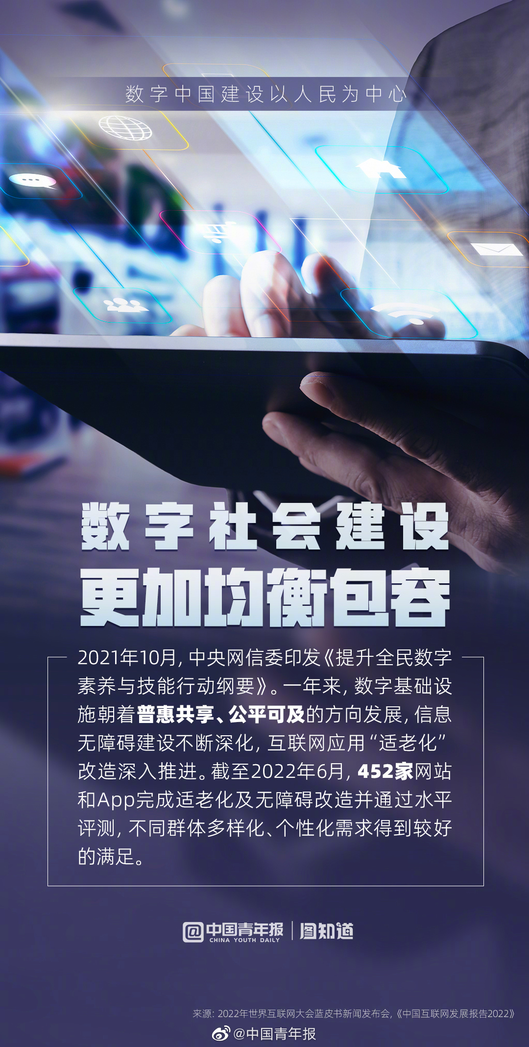 2022年世界互聯(lián)網(wǎng)大會今日發(fā)布了《中國互聯(lián)網(wǎng)發(fā)展報告2022》。報告中提到,一年以來,我國數(shù)字惠民便民取得了不小的成就,數(shù)字社會建設(shè)取得新的進展。公共服務(wù)更加智慧便捷,城鄉(xiāng)發(fā)展和治理模式不斷創(chuàng)新,數(shù)字社會建設(shè)更加均衡包容......數(shù)字化社會正在更廣范圍、更深程度提升人民群眾的獲得感、幸福感、安全感。