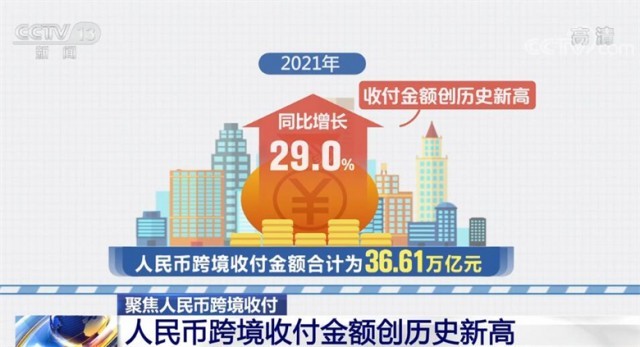 央視網消息:經過十余年的發(fā)展,人民幣國際化正煥發(fā)出旺盛的生命力。數據顯示,2021年,人民幣跨境收付金額創(chuàng)歷史新高。在我國金融機構、企業(yè)和個人開展的跨境交易總額中,有近一半已經使用人民幣進行結算。