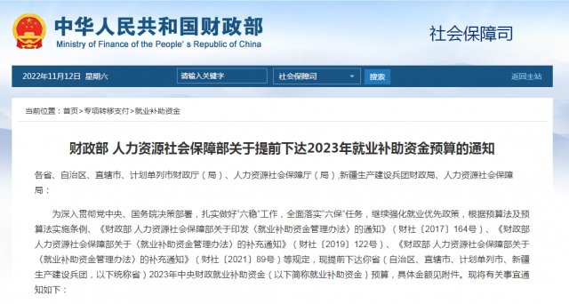 財政部、人社部10日發(fā)布《關于提前下達2023年就業(yè)補助資金預算的通知》,提前下達資金達432.3億元。