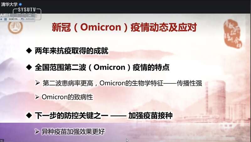 本次講座是“全國(guó)高??挂叽笾v堂”的一次活動(dòng),由中山大學(xué)、北京大學(xué)、清華大學(xué)共同主辦。鐘南山系統(tǒng)分析了全國(guó)范圍第二波奧密克戎疫情的特點(diǎn),介紹了奧密克戎的生物學(xué)特征、致病性,以及在大學(xué)教學(xué)環(huán)境中如何讓學(xué)生加強(qiáng)個(gè)人防護(hù),青年人如何應(yīng)對(duì)新冠,加強(qiáng)個(gè)人防護(hù)的8條建議等。
