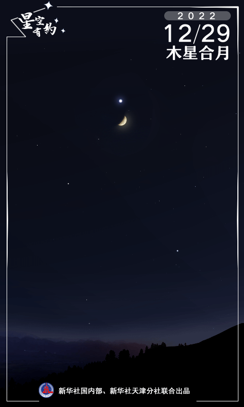 新華社天津12月27日電(記者周潤(rùn)?。┨煳目破諏<医榻B,12月29日晚天宇將上演木星合月,這是2022年最后一場(chǎng)行星合月。屆時(shí)只要天氣晴好,我國(guó)公眾可在南方天空欣賞到明亮木星與一輪上弦月近距離競(jìng)輝的唯美畫面。