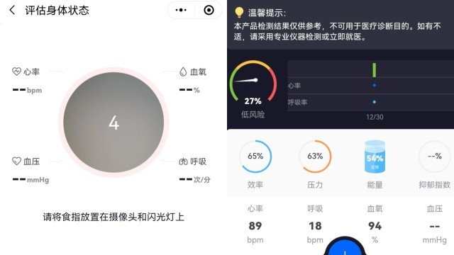 沙憲政分析稱,網(wǎng)上類似小程序和手機(jī)App是經(jīng)由手機(jī)攝像頭攝像,通過測(cè)量人體手指尖或面部動(dòng)脈血管隨心臟搏動(dòng)引起充盈的波動(dòng)和顏色的變化(也就是光譜分析),來檢測(cè)心率和血氧飽和度等指標(biāo)的。