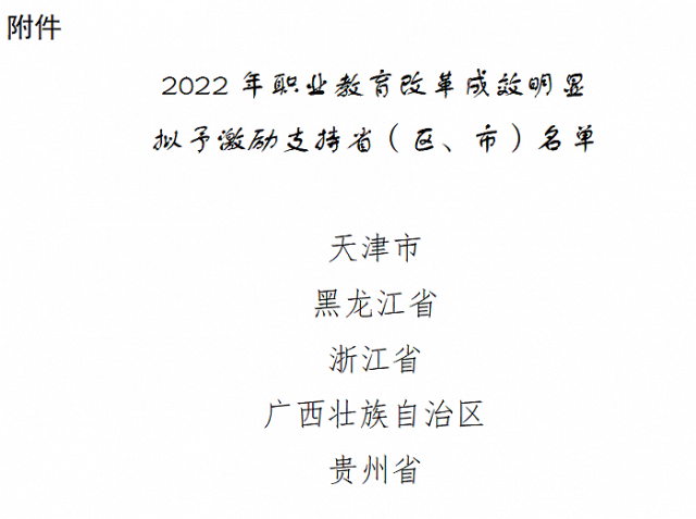 教育部公示2022年職業(yè)教育改革成效明顯擬予激勵(lì)支持?。▍^(qū)、市)名單