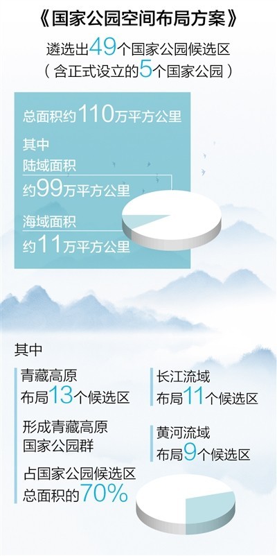 近日,國家林草局等四部門聯(lián)合印發(fā)《國家公園空間布局方案》,遴選出49個國家公園候選區(qū)(含正式設(shè)立的5個國家公園),總面積約110萬平方公里。方案指出,到2025年,統(tǒng)一規(guī)范高效的管理體制基本建立;到2035年,我國將基本完成國家公園空間布局建設(shè)任務(wù),基本建成全世界最大的國家公園體系。