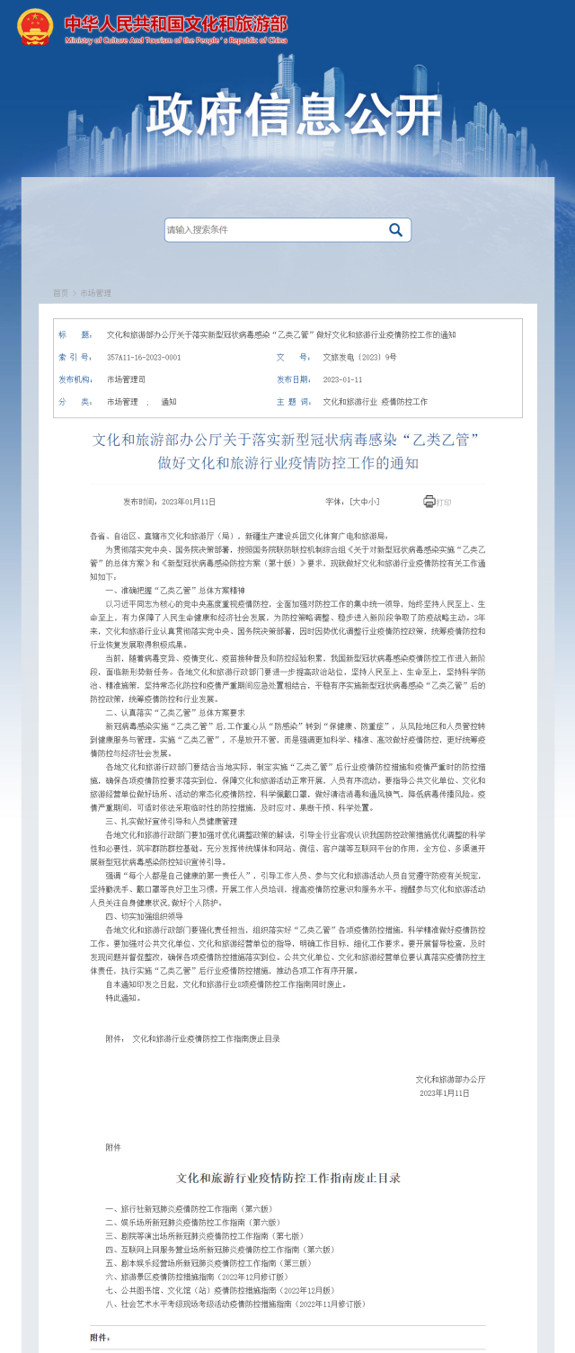 自本通知印發(fā)之日起,文化和旅游行業(yè)8項(xiàng)疫情防控工作指南同時(shí)廢止。