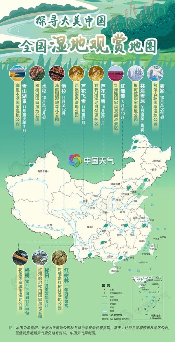 濕地不僅能為人們提供四季不同的可觀賞景觀,還是十分重要的自然生態(tài)系統(tǒng),為大量的動(dòng)植物提供棲息地,既能保護(hù)生物的多樣性,也能調(diào)節(jié)氣候、凈化水質(zhì)。有興趣的朋友可根據(jù)最佳觀賞期前往觀賞,提醒大家出游仍需注意佩戴口罩,做好健康防護(hù)工作。(中國天氣網(wǎng) 文/江漪 設(shè)計(jì)/任成英 數(shù)據(jù)支持/李靚)