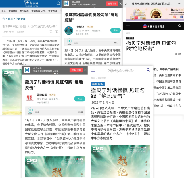 未播先熱!這部當代人幾乎聞所未聞的千古“奇書”,一下子吸引了海內(nèi)外網(wǎng)民目光。海內(nèi)外諸多媒體迅速關注,紛紛報道。截至目前,歐洲華語廣播電臺、匈牙利聯(lián)合報、北歐時報等數(shù)十家海外媒體對第二季內(nèi)容的轉發(fā)和報道,已輻射10多個國家和地區(qū),在海外再次掀起“典籍熱”。