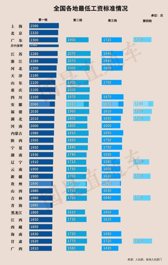 滬京粵最低工資標(biāo)準(zhǔn)全國(guó)領(lǐng)先
