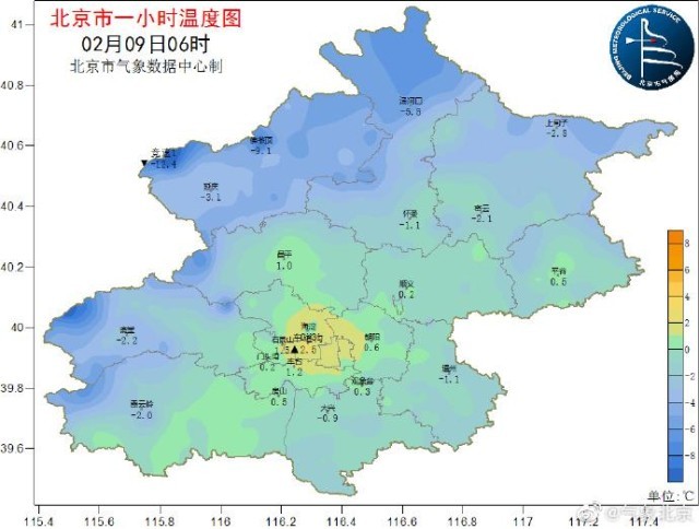 2月9日6時45分,北京南郊觀象臺氣溫為0℃,地面溫度-1.7℃。目前北京市城區(qū)氣溫在0~2℃之間,受降雪天氣影響,預(yù)計今天白天最高氣溫只有1℃,降溫明顯,體感陰冷,外出時還需注意防寒保暖,謹防感冒和心腦血管疾病的發(fā)生。