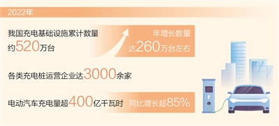 本報北京2月14日電 (記者丁怡婷)記者近日從國家能源局獲悉:2022年我國充電基礎(chǔ)設(shè)施繼續(xù)高速增長,年增長數(shù)量達到260萬臺左右,累計數(shù)量約520萬臺。其中,公共充電基礎(chǔ)設(shè)施增長約65萬臺,累計數(shù)量達到180萬臺左右;私人充電基礎(chǔ)設(shè)施增長超過190萬臺,累計數(shù)量超過340萬臺。