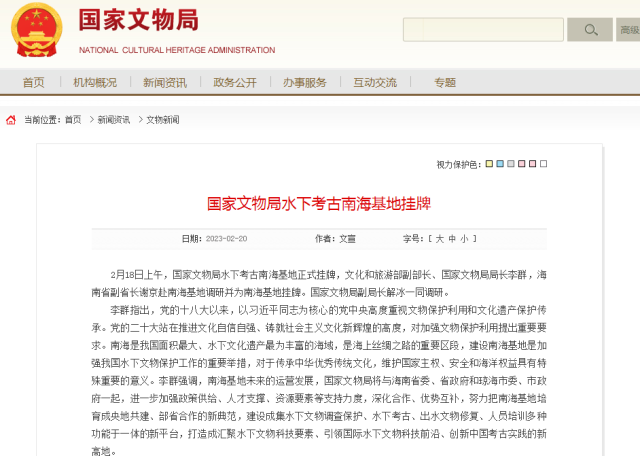 文化和旅游部副部長、國家文物局局長李群表示,南海是我國面積最大、水下文化遺產(chǎn)最為豐富的海域,是海上絲綢之路的重要區(qū)段。國家文物局將努力把南?;嘏嘤裳氲毓步ā⒉渴『献鞯男碌浞?,建設(shè)成集水下文物調(diào)查保護、水下考古、出水文物修復(fù)、人員培訓(xùn)多種功能于一體的新平臺,打造成匯聚水下文物科技要素、引領(lǐng)世界水下文物科技前沿、創(chuàng)新中國考古實踐的新高地。