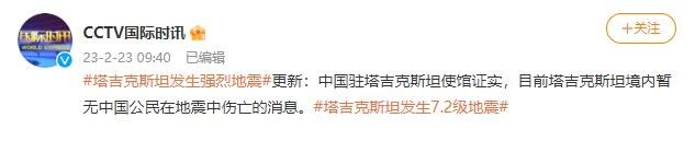 央視網(wǎng)消息:據(jù)@CCTV國(guó)際時(shí)訊 微博,中國(guó)駐塔吉克斯坦使館證實(shí),目前塔吉克斯坦境內(nèi)暫無(wú)中國(guó)公民在地震中傷亡的消息。