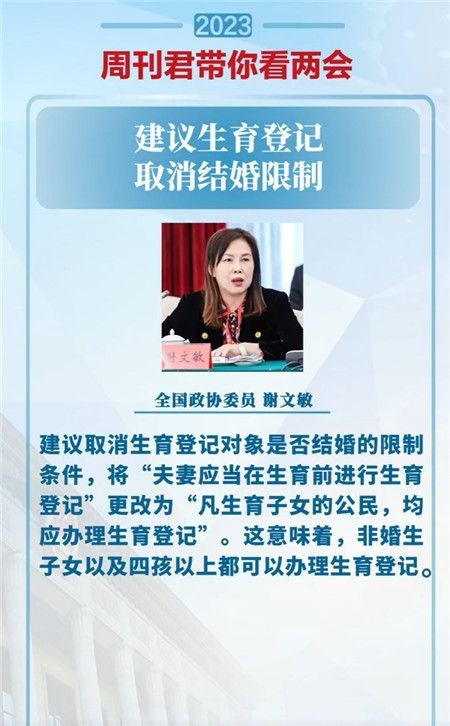 謝文敏建議,取消生育登記對象是否結(jié)婚的限制條件,將“夫妻應當在生育前進行生育登記”更改為“凡生育子女的公民,均應辦理生育登記”。這意味著,非婚生子女以及四孩以上都可以辦理生育登記。