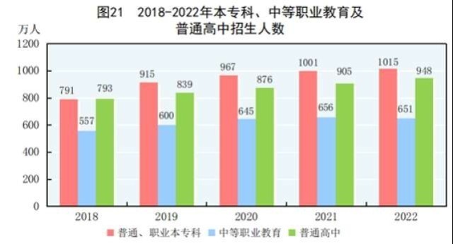 全年研究生教育招生124.2萬人,在學(xué)研究生365.4萬人,畢業(yè)生86.2萬人。普通、職業(yè)本??普猩?014.5萬人,在校生3659.4萬人,畢業(yè)生967.3萬人。中等職業(yè)教育招生650.7萬人,在校生1784.7萬人,畢業(yè)生519.2萬人。普通高中招生947.5萬人,在校生2713.9萬人,畢業(yè)生824.1萬人。初中招生1731.4萬人,在校生5120.6萬人,畢業(yè)生1623.9萬人。普通小學(xué)招生1701.4萬人,在校生10732.0萬人,畢業(yè)生1740.6萬人。特殊教育招生14.6萬人,在校生91.9萬人,畢業(yè)生15.9萬人。學(xué)前教育在園幼兒4627.5萬人。九年義務(wù)教育鞏固率為95.5%,高中階段毛入學(xué)率為91.6%。