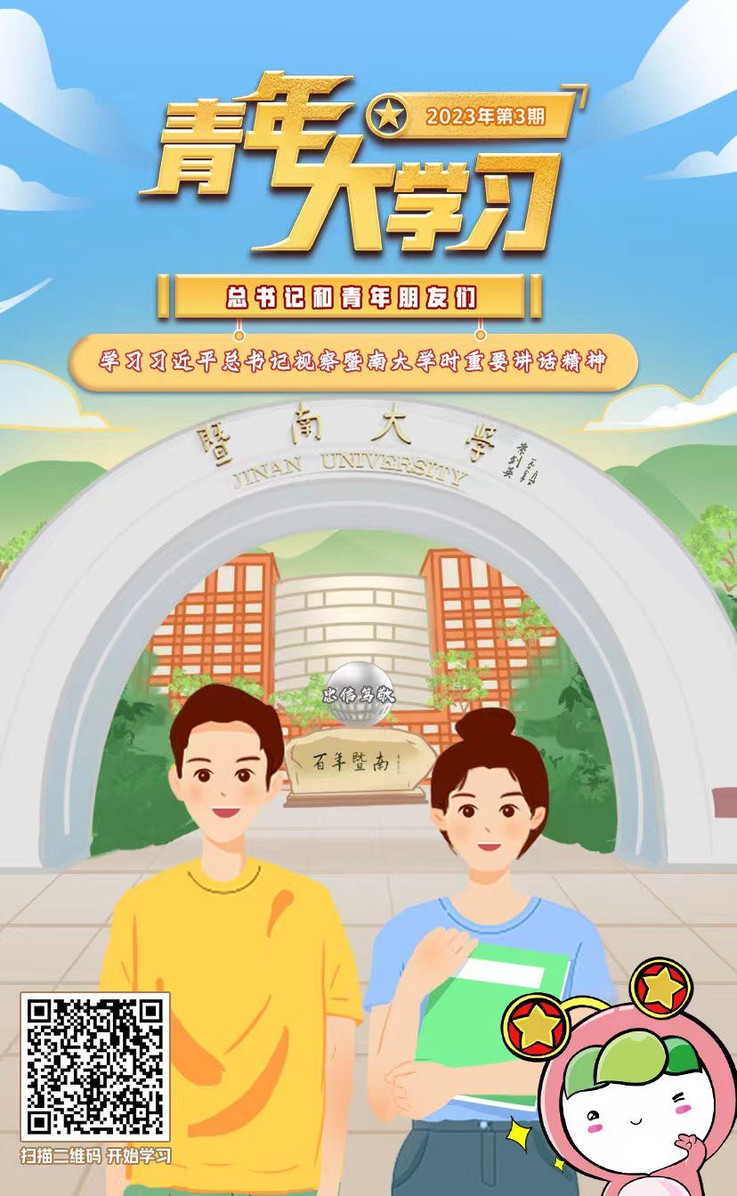 中國青年報(bào)客戶端訊(中青報(bào)·中青網(wǎng)記者 杜沂蒙)3月13日,由共青團(tuán)中央宣傳部和中國青年報(bào)·中青在線聯(lián)合推出的“青年大學(xué)習(xí)”網(wǎng)上主題團(tuán)課2023年第3期上線。2018年10月24日,習(xí)近平總書記到暨南大學(xué)視察并指出,我國有5000多萬海外僑胞,這是我國發(fā)展的一個獨(dú)特優(yōu)勢,改革開放有海外僑胞的一份功勞,暨南大學(xué)要堅(jiān)持自己的辦學(xué)特色,把學(xué)校辦得更好,為海外僑胞回祖國學(xué)習(xí)、傳承中華文化創(chuàng)造更好條件。本期“青年大學(xué)習(xí)”網(wǎng)上主題團(tuán)課“學(xué)習(xí)習(xí)近平總書記視察暨南大學(xué)時重要講話精神”,帶領(lǐng)廣大團(tuán)員青年一起學(xué)習(xí)相關(guān)內(nèi)容。截至目前,“青年大學(xué)習(xí)”2023年兩會特輯參與學(xué)習(xí)互動的人數(shù)為57738080人,總點(diǎn)擊量為113980661。