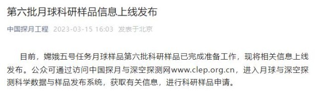 央視網(wǎng)消息:據(jù)“中國探月工程”微信公眾號消息,目前,嫦娥五號任務月球樣品第六批科研樣品已完成準備工作,現(xiàn)將相關信息上線發(fā)布。公眾可通過訪問中國探月與深空探測網(wǎng)www.clep.org.cn,進入月球與深空探測科學數(shù)據(jù)與樣品發(fā)布系統(tǒng),獲取有關信息,進行科研樣品申請。