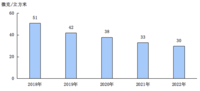 圖9 2018-2022年細顆粒物(PM2.5)年均濃度