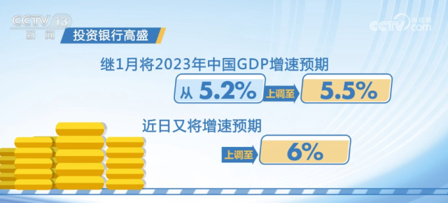 央視網(wǎng)消息:今年以來,國際機(jī)構(gòu)紛紛上調(diào)中國經(jīng)濟(jì)增長預(yù)期。投資銀行高盛繼1月將2023年中國GDP增速預(yù)期從5.2%上調(diào)至5.5%后,近日又將增速預(yù)期上調(diào)至6%。據(jù)國際貨幣基金組織測算,中國經(jīng)濟(jì)的強(qiáng)勁反彈意味著將在今年貢獻(xiàn)全球經(jīng)濟(jì)增長的約三分之一,將為世界經(jīng)濟(jì)帶來強(qiáng)勁的拉動作用。