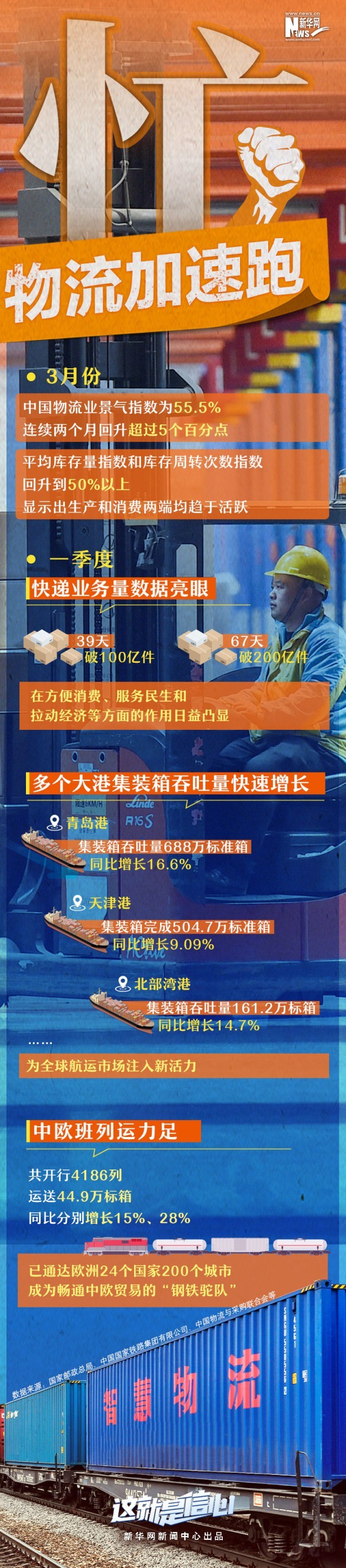 物流是國民經(jīng)濟(jì)運(yùn)行的血脈。1-3月,快遞業(yè)務(wù)、中歐班列、集裝箱吞吐量等多個(gè)維度的物流數(shù)據(jù)持續(xù)向好,共同交織出了繁忙中國的經(jīng)濟(jì)加速度。