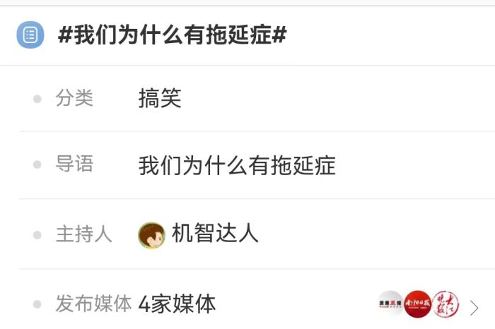 不過(guò),年輕人使用這個(gè)梗時(shí)的狀態(tài),往往是“半真半假”:一方面為自己的“拖延”感到焦慮、自責(zé),所以選擇勇敢地說(shuō)出來(lái),并且試圖在同道中人的回應(yīng)里尋找共鳴;另一方面,“拖延癥”并不是一個(gè)真的讓人感到萬(wàn)分愧疚的詞匯,人們?cè)谕婀r(shí)甚至可能帶上些許調(diào)侃色彩,在一定程度上減輕心理負(fù)擔(dān),何樂(lè)而不為?