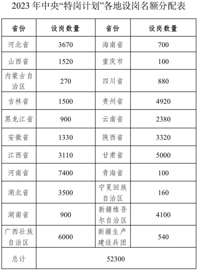 今年全國計(jì)劃招聘特崗教師52300名