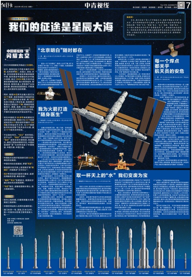 今天,我們迎來了第八個(gè)中國(guó)航天日。隨著中國(guó)航天不斷“走出去”,昔日的神秘面紗早已揭開,近年來更是以自信開放的姿態(tài)頻頻出圈:“神舟”飛天,“嫦娥”奔月,“北斗”指路,“祝融”探火,一個(gè)個(gè)國(guó)之重器成為當(dāng)代青少年最愛追的“星”。本版邀約奮戰(zhàn)在航天一線的優(yōu)秀青年代表,請(qǐng)他們講述逐夢(mèng)太空征途上創(chuàng)造的精彩故事,以期吸引更多青少年加入探索宇宙奧秘的大軍,格物致知、叩問蒼穹。