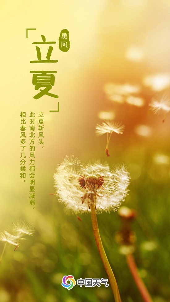 正所謂“立夏斬風(fēng)頭”。到了立夏,我國各地風(fēng)力明顯減弱,夏日的風(fēng)不再像春季那樣喧囂狂躁,相比春風(fēng)也多了幾分柔和。