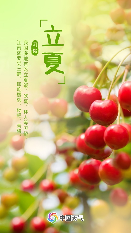 立夏還是品嘗美食的好時節(jié),許多家庭會將赤豆、黃豆、黑豆、豌豆、綠豆做成“立夏飯”,寓意“五谷豐登”。江南有“嘗三鮮”的習(xí)俗,即品嘗甜蜜櫻桃、爽口青梅以及清甜枇杷。
