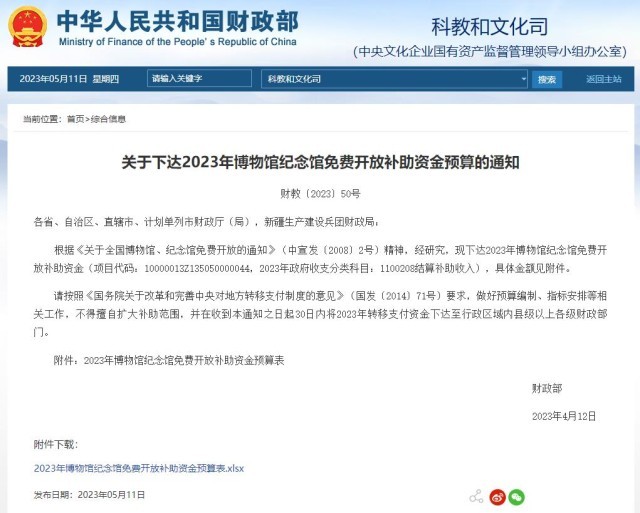 財政部:2023年博物館紀(jì)念館免費(fèi)開放補(bǔ)助資金預(yù)算下達(dá)