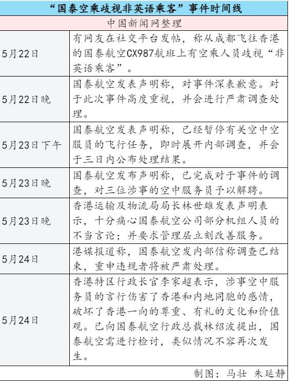 “國(guó)泰空乘歧視非英語(yǔ)乘客”事件時(shí)間線