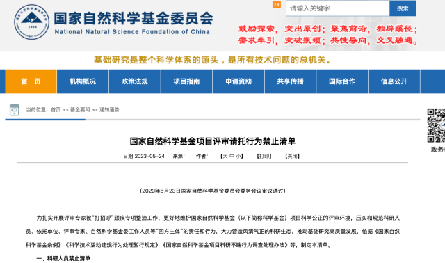 國家自然科學(xué)基金項目評審請托行為禁止清單