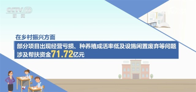 在鄉(xiāng)村振興方面,部分項(xiàng)目出現(xiàn)經(jīng)營(yíng)虧損、種養(yǎng)殖成活率低及設(shè)施閑置廢棄等問題,涉及幫扶資金71.72億元。
