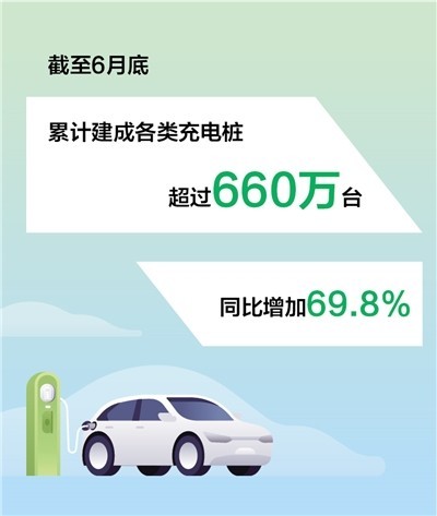 農(nóng)村地區(qū)適度超前建設(shè)充電基礎(chǔ)設(shè)施,只是我國充電樁建設(shè)的一個(gè)縮影。目前,我國已建成世界上數(shù)量最多、輻射面積最大、服務(wù)車輛最全的充電基礎(chǔ)設(shè)施體系。中國電動(dòng)汽車充電基礎(chǔ)設(shè)施促進(jìn)聯(lián)盟發(fā)布的最新數(shù)據(jù)顯示,截至6月底,全國累計(jì)建成各類充電樁超過660萬臺(tái),同比增加69.8%。