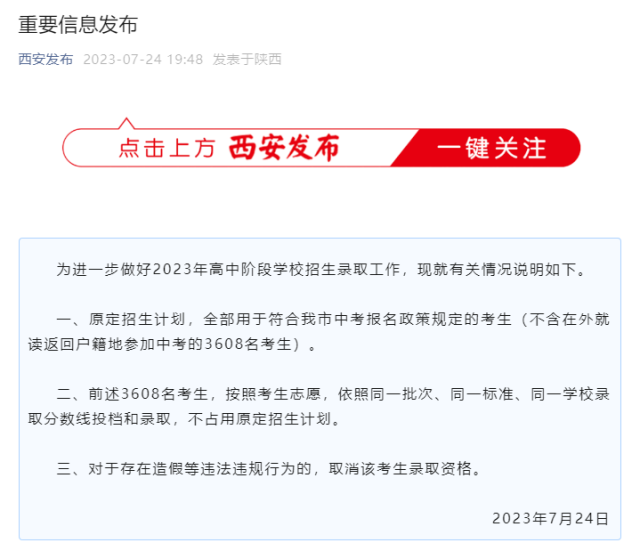 為進(jìn)一步做好2023年高中階段學(xué)校招生錄取工作,現(xiàn)就有關(guān)情況說明如下。